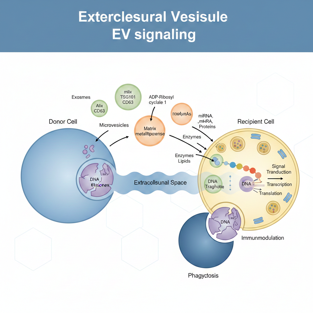 Exosomes are extracellular vesicles involved in intercellular communication. In regenerative medicine research, they are studied for their potential role in