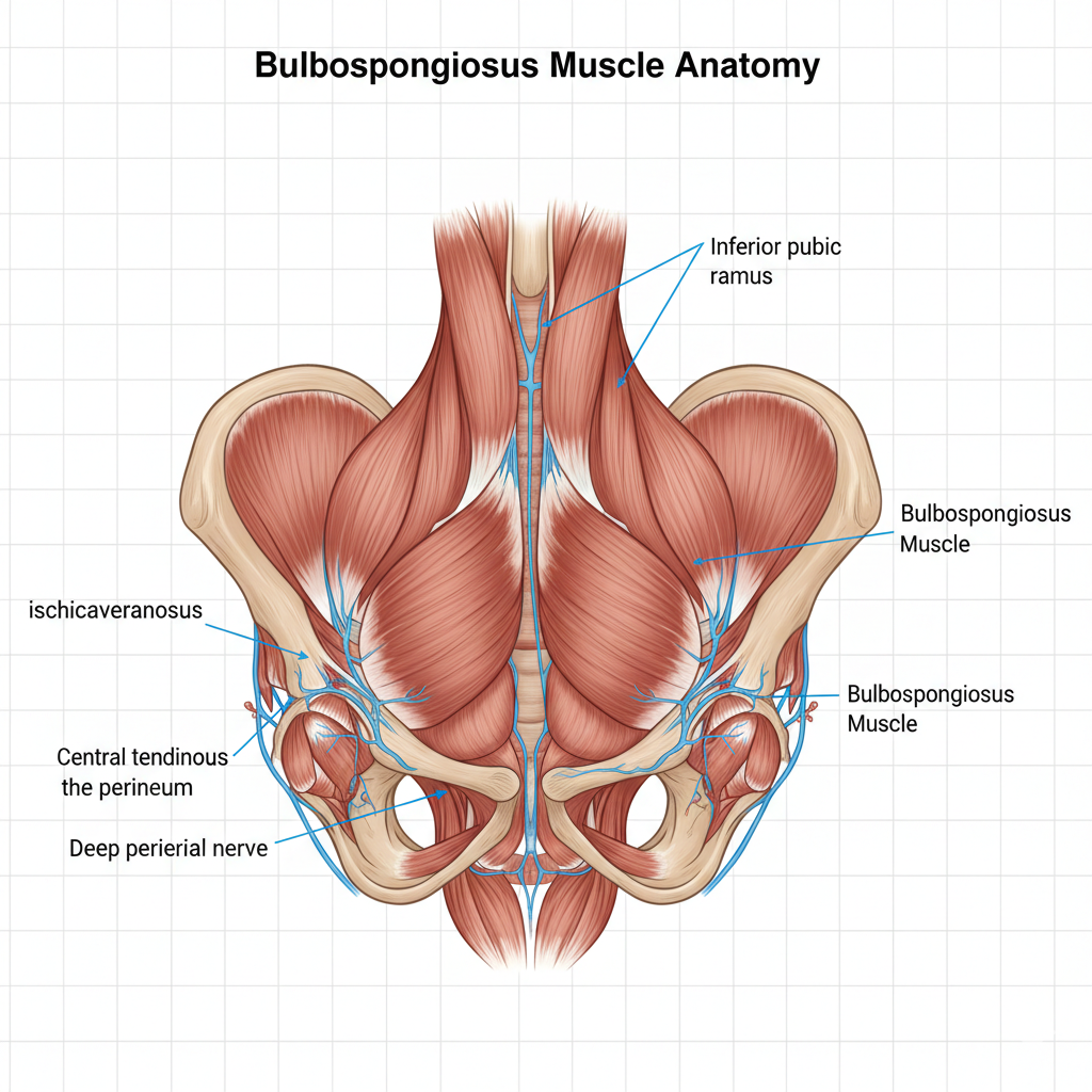 The bulbospongiosus muscle participates in rhythmic contractions during ejaculation. Increased neuromuscular excitability may reduce voluntary control.